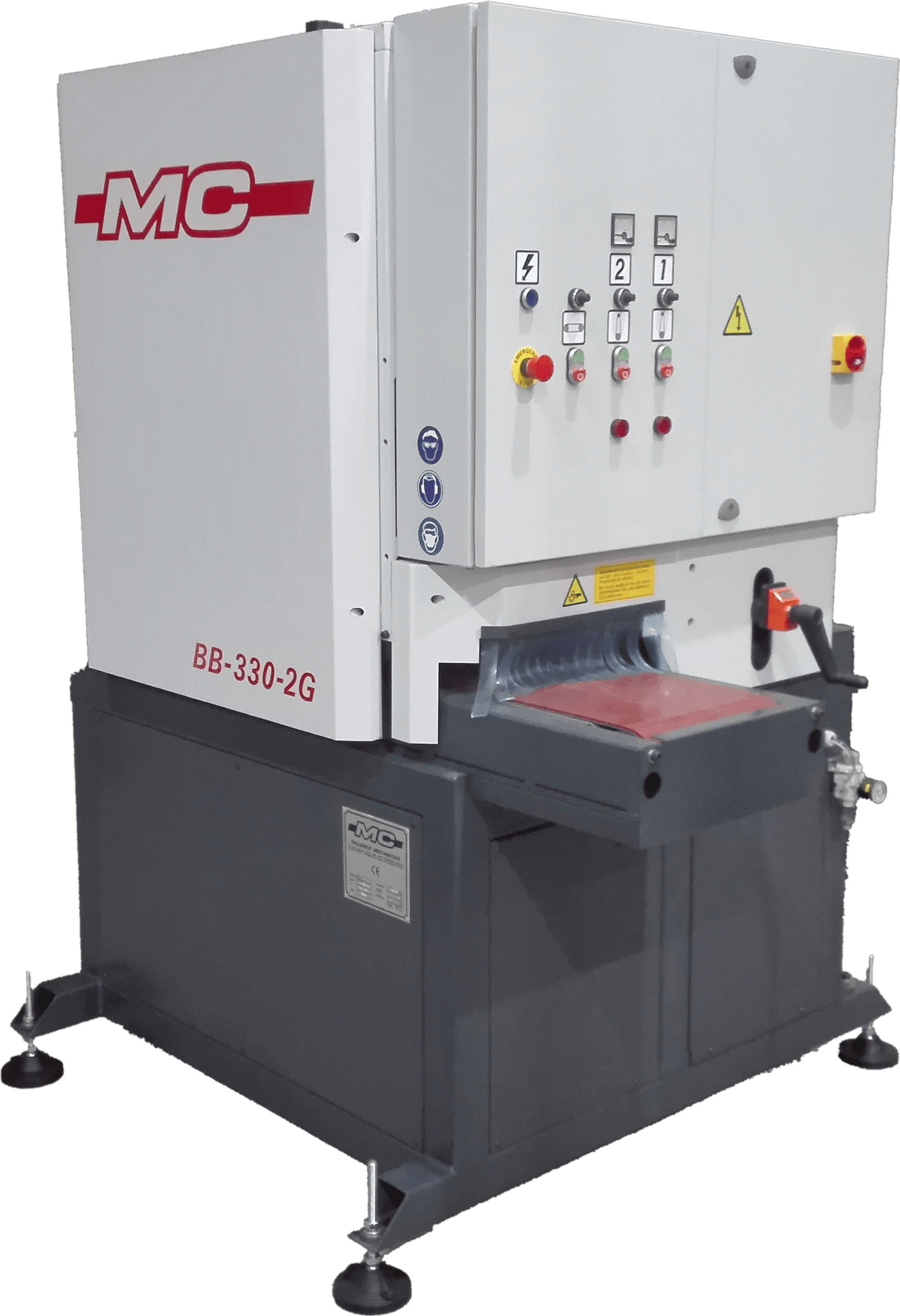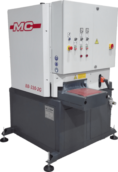 Machine designed for sanding metal with a useful width of 330 mm and fixed bed.